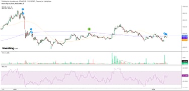 The chart shows that the stock price is trading in a sideways pattern.