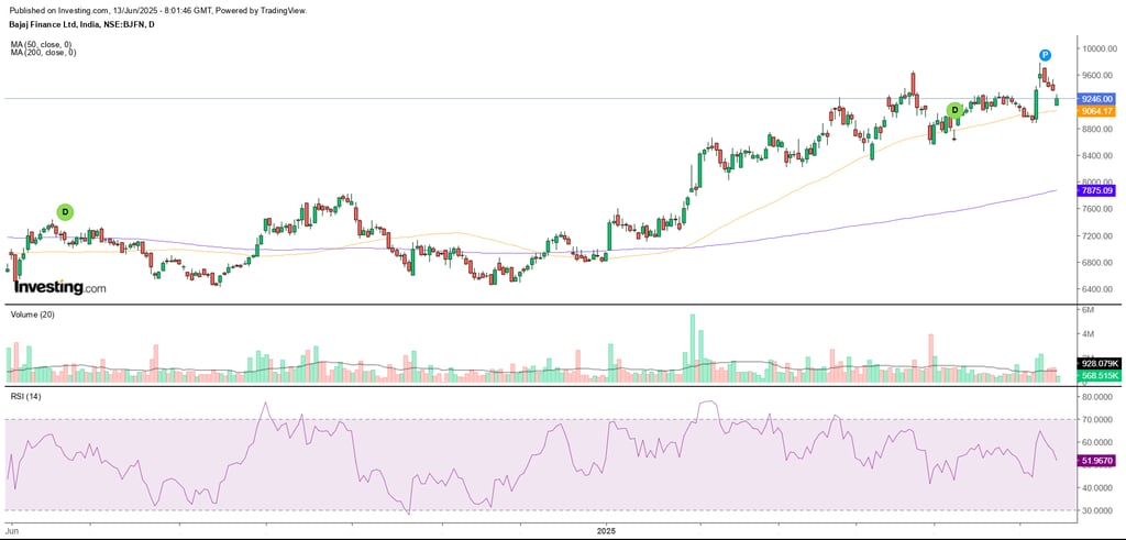Bajaj Finance Ltd has announced a major corporate action involving a 1:2 stock split and a 4:1 bonus share issue, aimed at increasing liquidity and making its shares more accessible to retail investors. Shareholders who own Bajaj Finance shares by the end of trading on June 13, 2025, will be eligible for these benefits. The stock will trade ex-split and ex-bonus starting June 16, 2025.