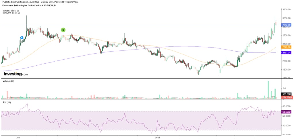 Endurance Technologies Ltd has been on a remarkable upward trajectory, with its stock price surging to a fresh 52-week high of ₹3,030 on July 1, 2025. The company’s shares have gained approximately 28% over the past six months and nearly doubled from their April low of ₹1,555, reflecting strong investor confidence and robust business prospects. This rally has outpaced broader market indices, with Endurance delivering a 21% gain in just the past week compared to a modest 1% rise in the Sensex.
