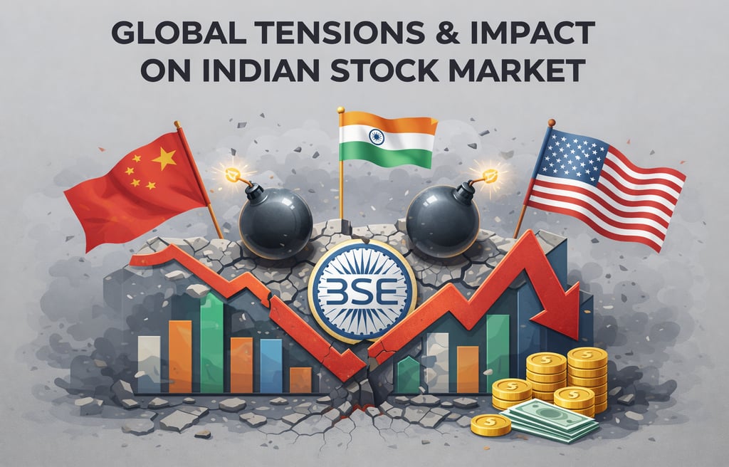 Global tensions from wars and trade fights are hitting India's stocks short-term, with Nifty down 3% early in 2026 on FII selling and oil spikes.