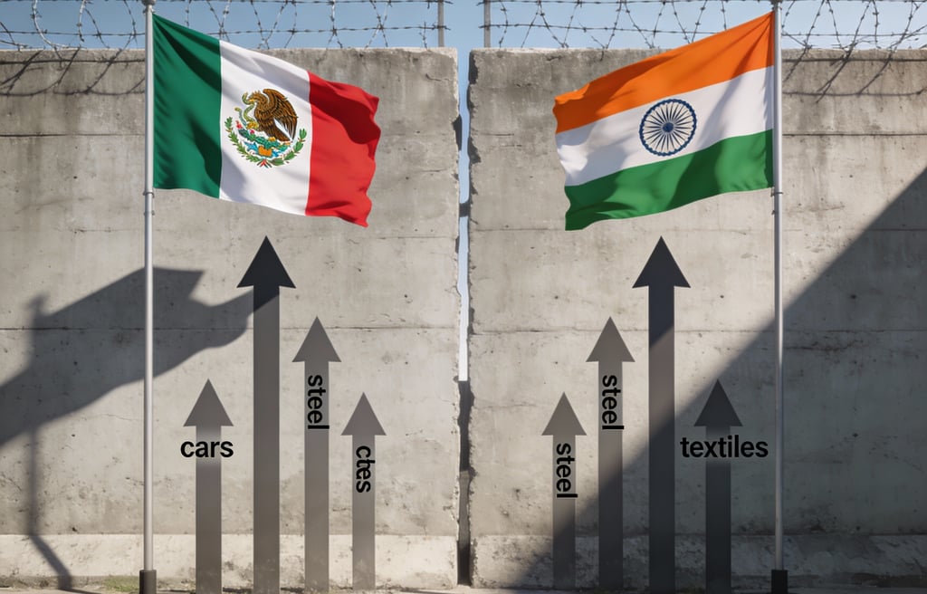 Mexico recently imposed up to 50% tariffs on many Indian imports like cars, textiles, and steel starting January 2026 to protect its own industries and cut trade gaps.