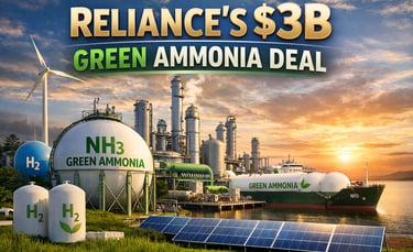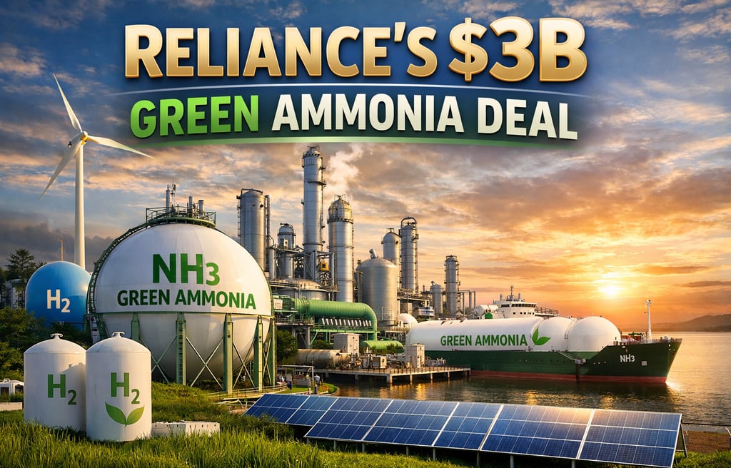 Reliance signed a $3 billion deal with South Korea's Samsung C&T to supply green ammonia—a clean, zero-carbon fuel—for 15 years starting late 2029.