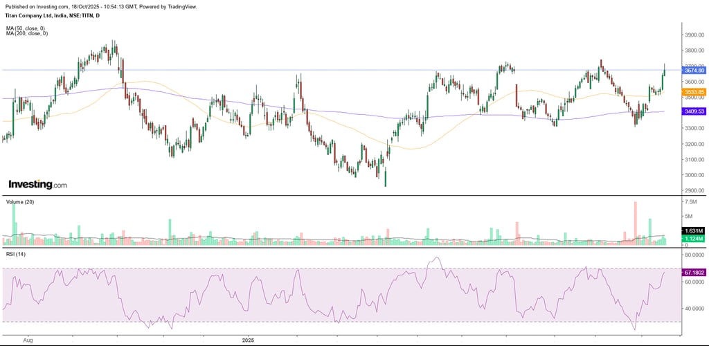 Titan Company Limited continues to show robust performance and strong market confidence as of October 2025. The company’s stock has been trading near its record highs, reflecting investor optimism fueled by strong earnings forecasts and sustained growth momentum. Recently, brokerages such as Globe Capital have maintained positive ratings on Titan, highlighting projected revenue growth of 18-20% and a target stock price suggesting a potential upside. Titan's Q2 FY26 results conference call is scheduled for early November, with expectations of significant profit growth compared to the previous year. The company is actively focusing on expanding its market share through innovation, digital transformation, and new product lines, reinforcing its position as a leading lifestyle brand in India. Titan’s board meeting is also set to consider the unaudited financial results for the first half of 2025-26, indicating a transparent and structured approach to its corporate governance and financial disclosures.