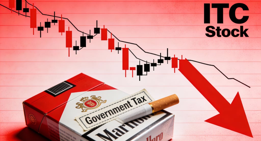 A sharp tobacco tax hike caused ITC shares to plummet 10-14%, erasing ₹60,000 crore in value as brokerages cut ratings over profit fears from higher cigarette duties.